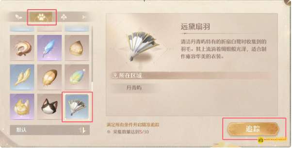 - 选择远黛扇羽并设为追踪目标,即可在地图上标记位置,方便再次寻找。