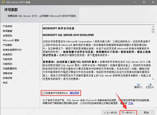 5、在软件的授权许可协议界面中,单击勾选【我接受许可条款】,然后再直接单击【下一步】