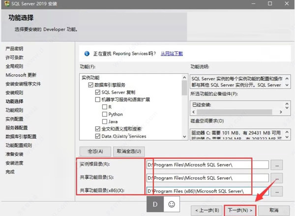 8、在下图所示界面中,需要更改软件的安装路径和共享目录,本案例选择安装到D盘,所以把原路径中的C更换为D即可,然后再直接单击【下一步】