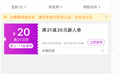 3、填写好相关信息,并绑定手机即可领取20元的优惠券,需购买商品满21元才能使用。
