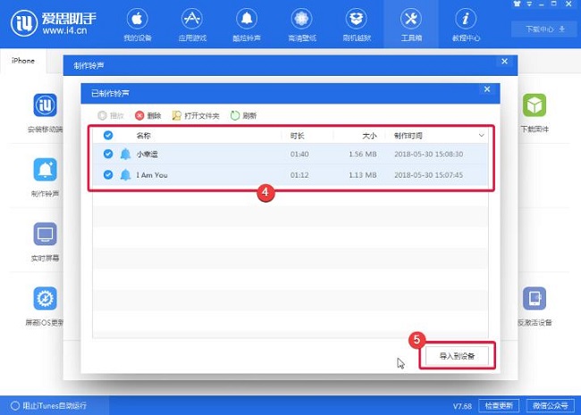 铃声并且导入到设备中,或通过爱思助手把喜欢的音乐制作成铃声导入到设备中,导入之后就可以在设备上设置成铃声。