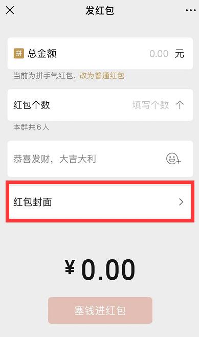 2、接着点击红包封面。