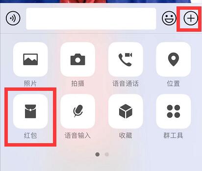 1、首先进入一个对话框,然后点击+号,然后选择红包。