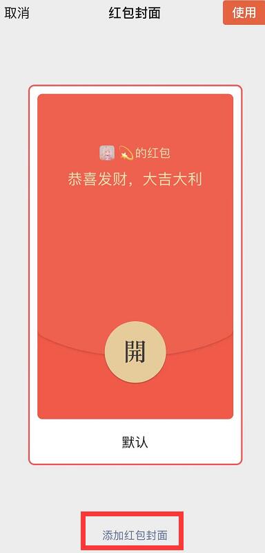3、然后用户进入红包封面设置的界面,如果用户已经领取了红包可以右滑左滑使用,如果用户想要输入序列号,请点击下方的【添加红包封面】。