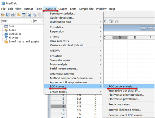 MedCalc是一款用于生物医学研究的统计软件,它可以分析各种系统性能曲线,具有丰富的功能集、高级的图形类型和模块。当某疾病诊断的金标准价格较贵,医生需使用ROC曲线评估该指标的诊断价值,并找到最佳诊断界值(cut-off值)。本文将介绍Medcalc如何绘制ROC曲线,有需要的小伙伴一起来看看吧!