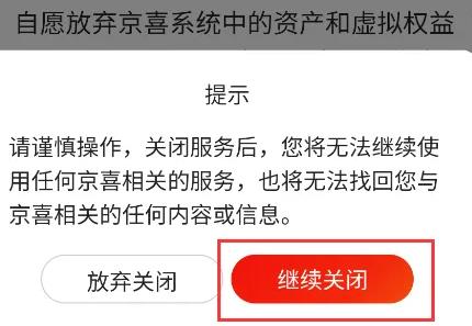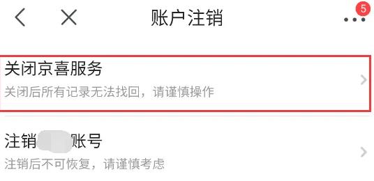 5、点击“关闭京喜服务”,