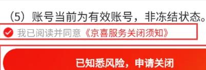6、勾选如图所示选项,点击底部“已知悉风险,申请关闭”,