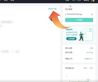 2.点击之后进入个人简历页面,在页面的右上角有一个预览下载的功能,点击该功能。