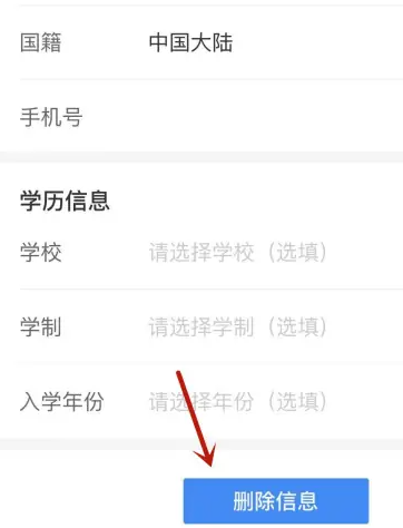 4、打开的编辑页面,滑动到底部,点击删除信息。