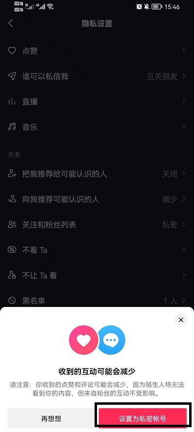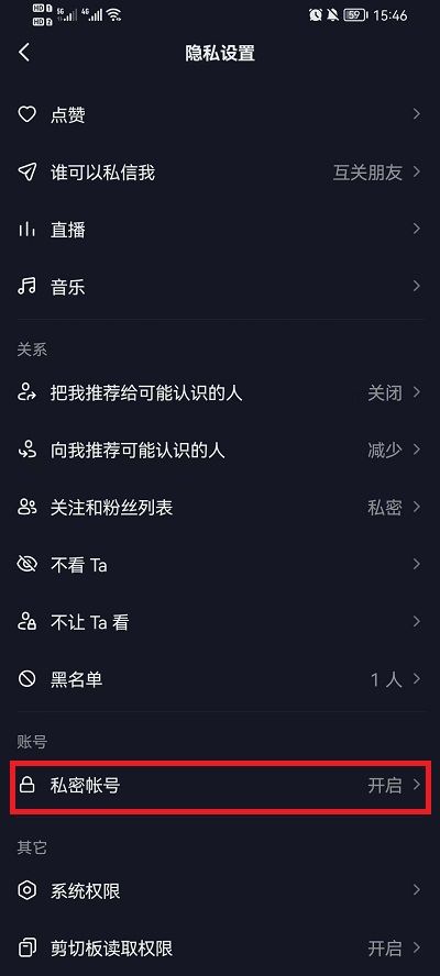 5、第五步:将私密账号打开就可以了。