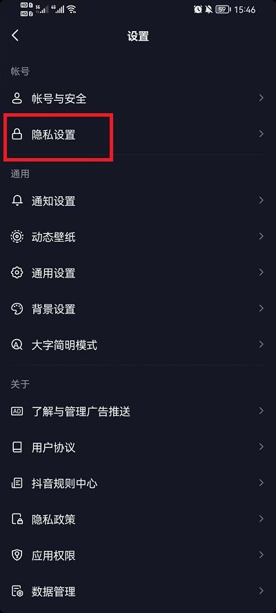 3、第三步:进入设置界面后向下滑动点击【隐私设置】;