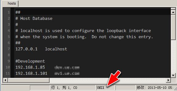 4、在修改过程中,唯一值得一提的恐怕就是换行符的格式了吧。本质上 iOS 是一个功能完备的 UNIX 系统,它的文本文件的换行符当然使用 UNIX 格式,与我们通常使用的 DOS/Windows 格式不一样。安全起见,建议你在保存文件的时候,留意换行符的格式。