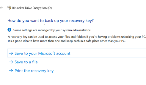 4、接着等待出现提示,就可以选择一个选项来备份恢复密钥就可以了。