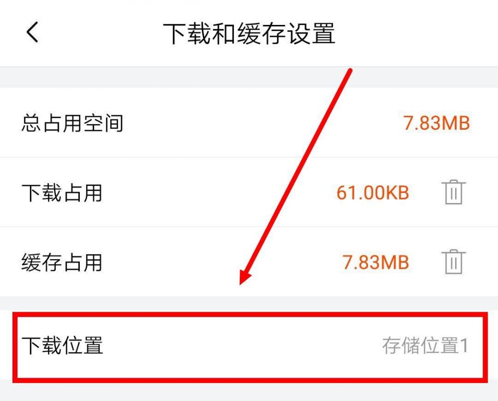 3、第三步:进入下载和缓存位置界面后点击【下载位置】;