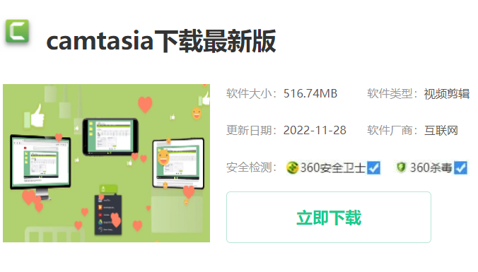 立即下载 精品合集camtasia是一款专业屏幕录像软件,包含了Camtasia 录像器、Camtasia Studio、Camtasia 菜单制作器、Camtasia 剧场、Camtasia 播放器和Screencast的内置功能。