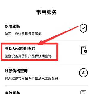 3、进去服务后找到真伪及保修期查询点开。