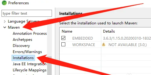 3、紧接着展开Maven,再点击installations.