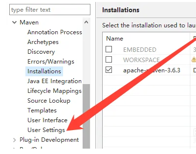 7、然后再依次点击Maven下的“User Settings”。