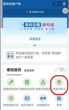 3、第三步:进入国务院客户端界面之后点击【防疫行程卡】;