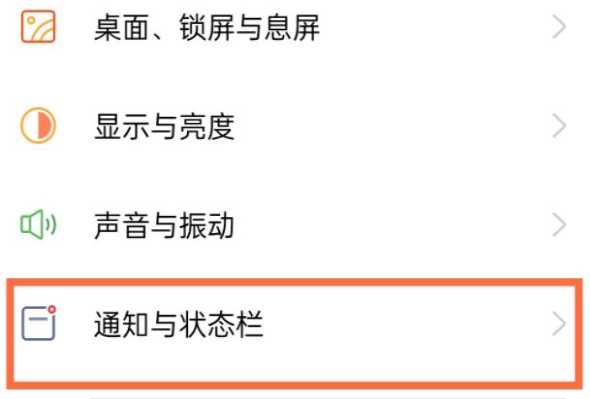 2、然后选择“通知与状态栏”。