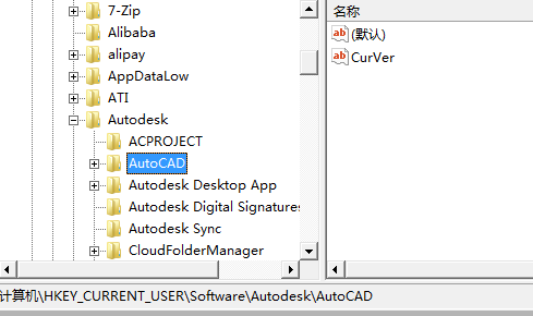 4、之后去删除:HKEY_LOCAL_userSOFTWARE里面的对应CAD版本。