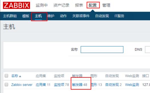 5、我们还可以在“主机”的“触发器”中为监控项设置触发器。