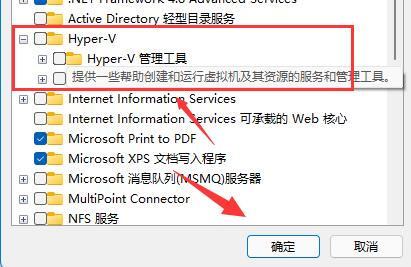 3、取消掉“Hyper-V”功能,再点击“确定”保存即可。