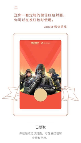 3、进入活动页面即可免费领取使命召唤封面红包。
