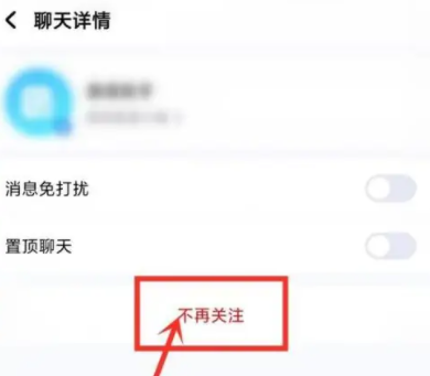 5、进入聊天详情,点击不再关注。
