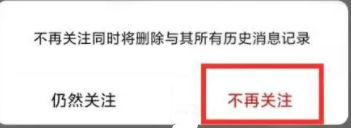 6、在弹出的窗口中选择不再关注。