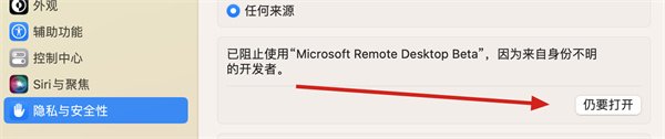 解决办法2:打开【系统设置】–【隐私与安全性】-下滑【安全性】板块下 …不明身份的开发者 点下方的【仍要打开】,输入开机密码 即可打开!(没有提示“仍要打开”这步就不用看了!)