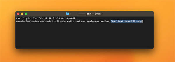 然而有的应用,尤其是游戏开启了任何来源还是不行,这是因为苹果进一步收缩了对未签名应用的权限,这时候就需要通过终端执行命令行代码来绕过应用签名认证就可以了。