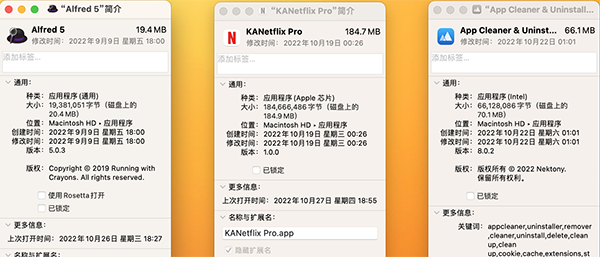右键单击应用程序里的APP,选择 显示简介,种类中有三种类型:通用、Apple 芯片、Intel。