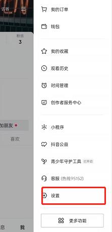 2、第二步:弹出侧边菜单栏后点击【设置】;