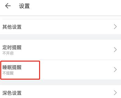 2、第二步:进入设置界面后向下滑动点击【睡眠提醒】;
