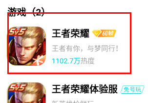 2、然后再对话框中搜索“王者荣耀”。