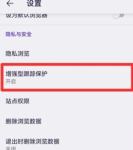 3、在设置界面中,点击“增强型跟踪保护”