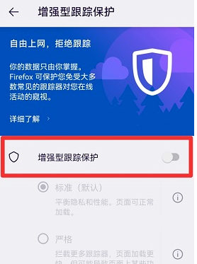 在使用火狐浏览器的时候,不少用户遇到过浏览网站页面时被限制的情况,想要取消火狐浏览器的网页限制可以打开设置中的增强型跟踪保护,在展开的页面中关闭增强型跟踪保护后面的的按钮。