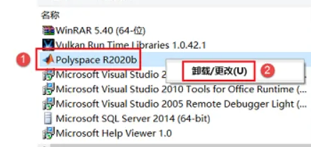 3、然后找到“Polyspace R2020b”右击选择“卸载/更改”。