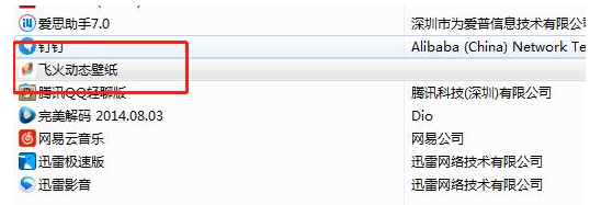 4、在这里找到飞火动态壁纸软件就可以进行卸载了。