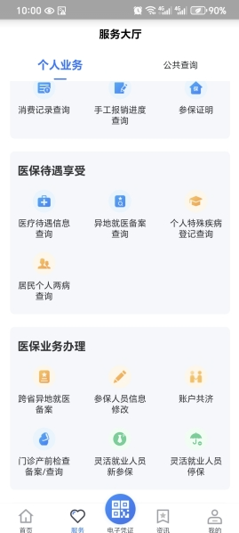 2.点击“更多服务”或页面下方“服务”进入服务大厅——个人业务。