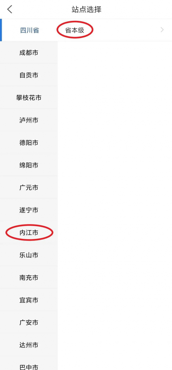 点击左上角“省本级”选择“内江市”