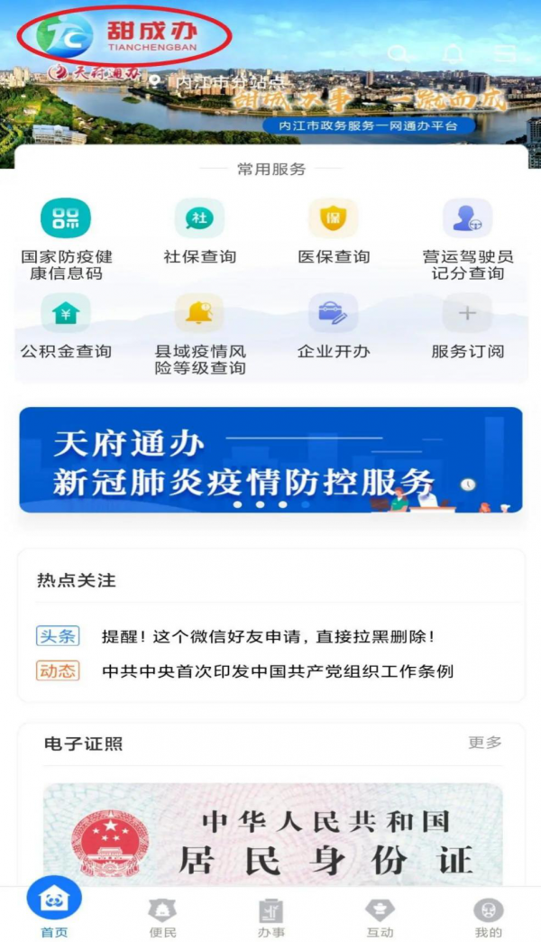进入“天府通办”页面