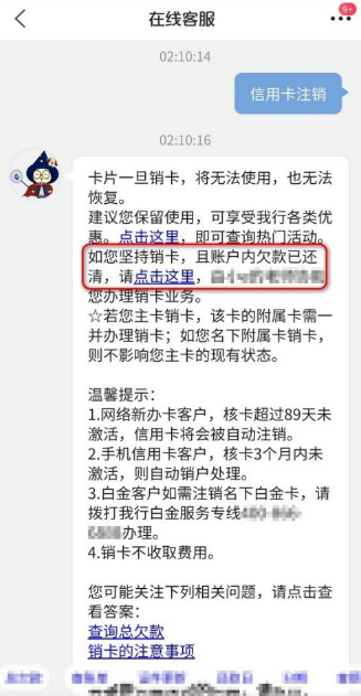 页面弹出信用卡注销操作提示,根据提示内容,点击请点击这里。