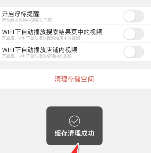 系统弹出“缓存清理成功”的提示,即可清理存储空间缓存。