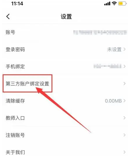 进入设置界面,选择“第三方账户绑定设置”。如图: