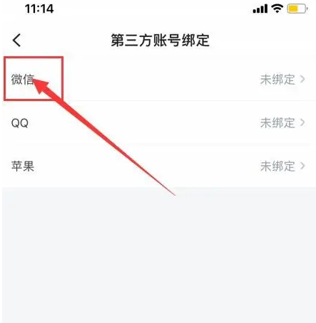 进入第三方账户绑定设置界面,选择“微信”。如图: