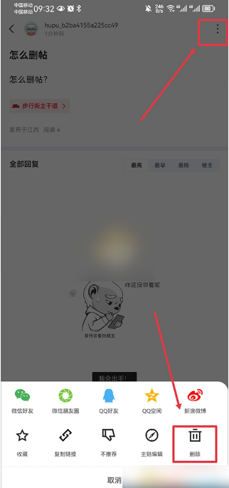 3、然后在帖子界面中点击右上角三点,最后点击删除就可以啦。