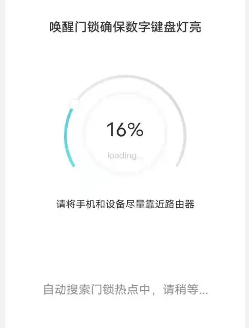 添加页面,根据提示唤醒门锁,等待自动连接手机。