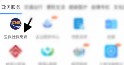 进入政务服务,找到点击上面的医保社保缴费选项。